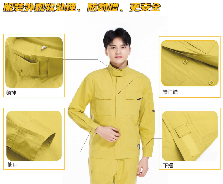 升級工裝(包含面料手機,款式升級),吸濕、排汗、透氣、穿著舒服,具備良好的抗皺性能,顏色多選,不易變形。防靜電處理,適用于B級防靜電要求的工種。版型修身處理,既滿足工作需要又不臃腫,暗門禁系扣,接近時裝元素。服裝表面無拉鏈、紐扣等硬物,兼顧特殊需要,防刮蹭的行業(yè),多口袋兜設(shè)計,還有領(lǐng)型是一衣三穿,讓工裝更講究(立領(lǐng)、平翻領(lǐng)、小西服領(lǐng))