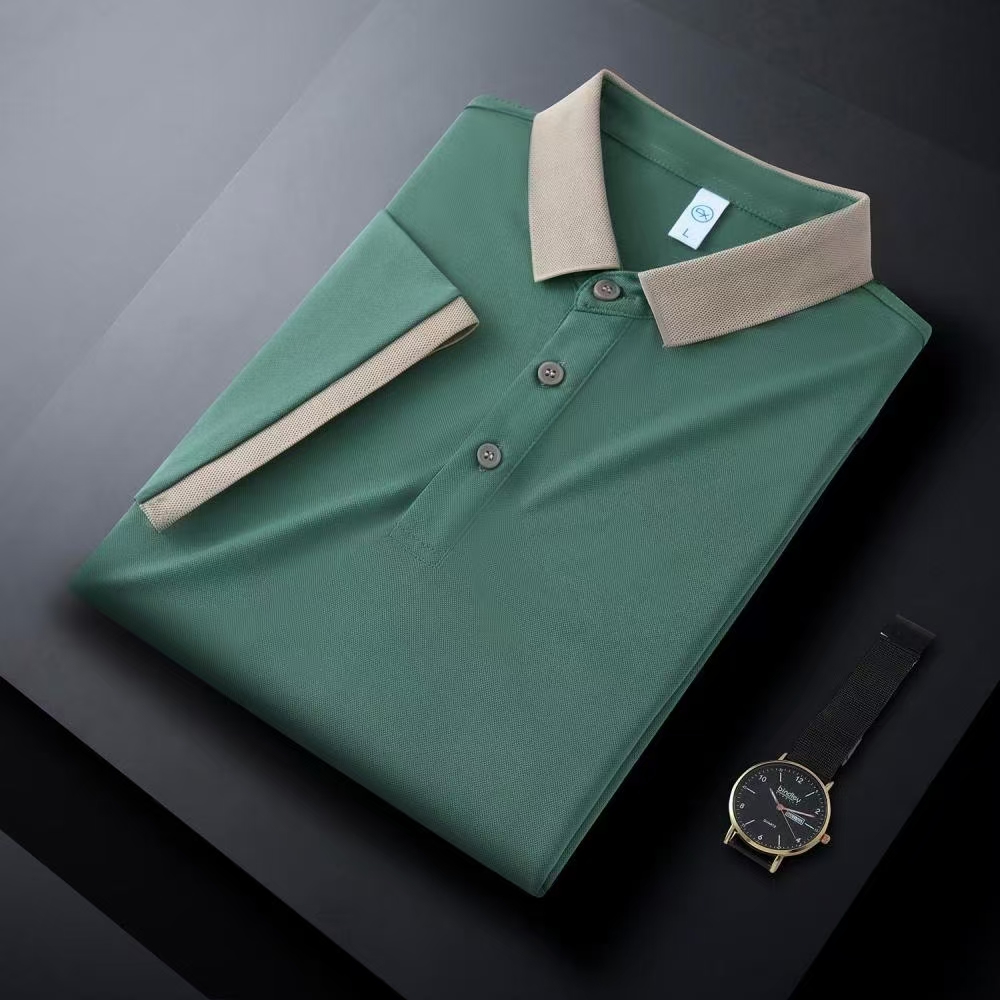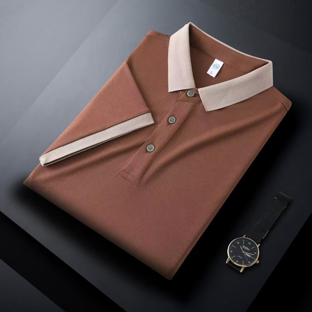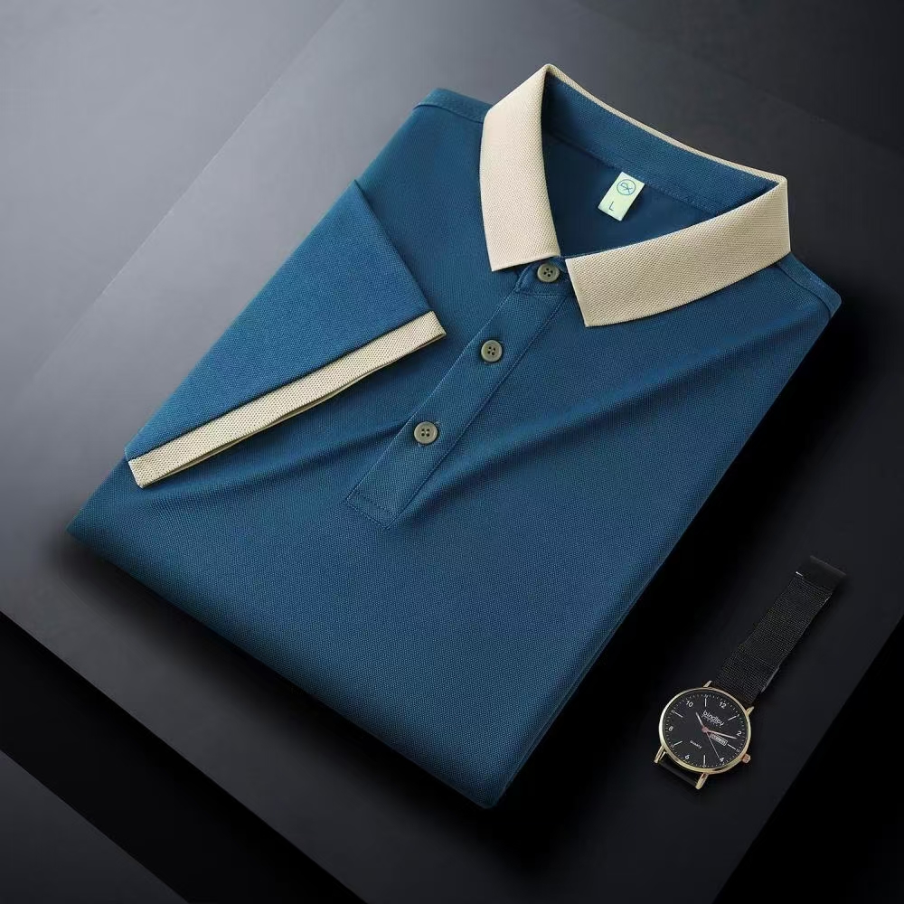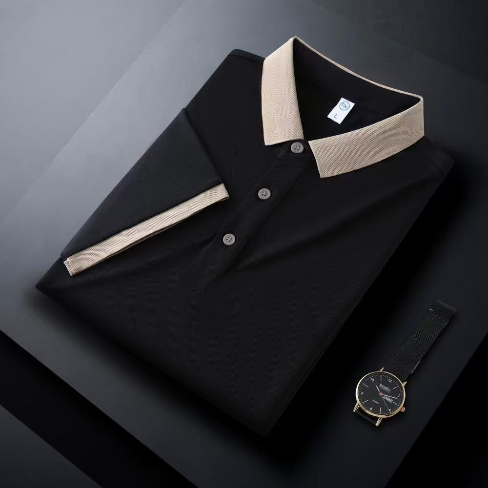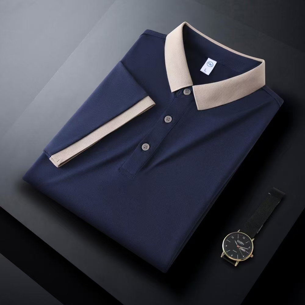廠家直銷現(xiàn)貨體恤衫 時尚商務(wù)辦公休閑polo衫 螺紋領(lǐng)袖拼色POLO衫