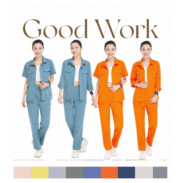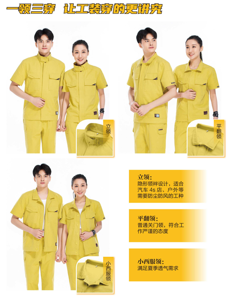 升級(jí)工裝(包含面料手機(jī),款式升級(jí)),吸濕、排汗、透氣、穿著舒服,具備良好的抗皺性能,顏色多選,不易變形。防靜電處理,適用于B級(jí)防靜電要求的工種。版型修身處理,既滿足工作需要又不臃腫,暗門禁系扣,接近時(shí)裝元素。服裝表面無(wú)拉鏈、紐扣等硬物,兼顧特殊需要,防刮蹭的行業(yè),多口袋兜設(shè)計(jì),還有領(lǐng)型是一衣三穿,讓工裝更講究(立領(lǐng)、平翻領(lǐng)、小西服領(lǐng))