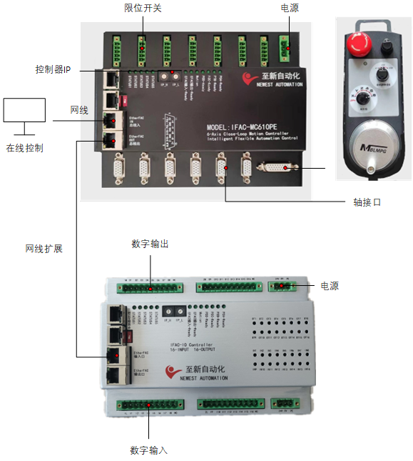 EtherFAC總線是自主研發(fā)的基于以太網(wǎng)的高速通訊總線,與上位機(jī)使用標(biāo)準(zhǔn)網(wǎng)口連接,兼容所有標(biāo)準(zhǔn)以太網(wǎng)接口??刂破魃系腅therFAC接口包含IN、OUT兩個(gè)端口,多個(gè)控制器通過OUT->IN->OUT->IN的方式進(jìn)行級聯(lián)擴(kuò)展,可擴(kuò)展256個(gè)節(jié)點(diǎn),實(shí)現(xiàn)千軸規(guī)模的擴(kuò)展。EtherFAC總線通訊功能封裝為通信組件,通信組件可以動(dòng)態(tài)鏈接庫DLL的形式,任意集成到其它軟件中,通過動(dòng)態(tài)鏈接庫函數(shù)將EtherFAC總線控制功能對外開放,使EtherFAC總線功能可以集成到其它軟件中,實(shí)現(xiàn)EtherFAC總線功能的對外開放。控制器在總線上的IP地址網(wǎng)段可通過軟件設(shè)定,也可通過控制器上的兩個(gè)旋轉(zhuǎn)開關(guān)設(shè)置IP地址。